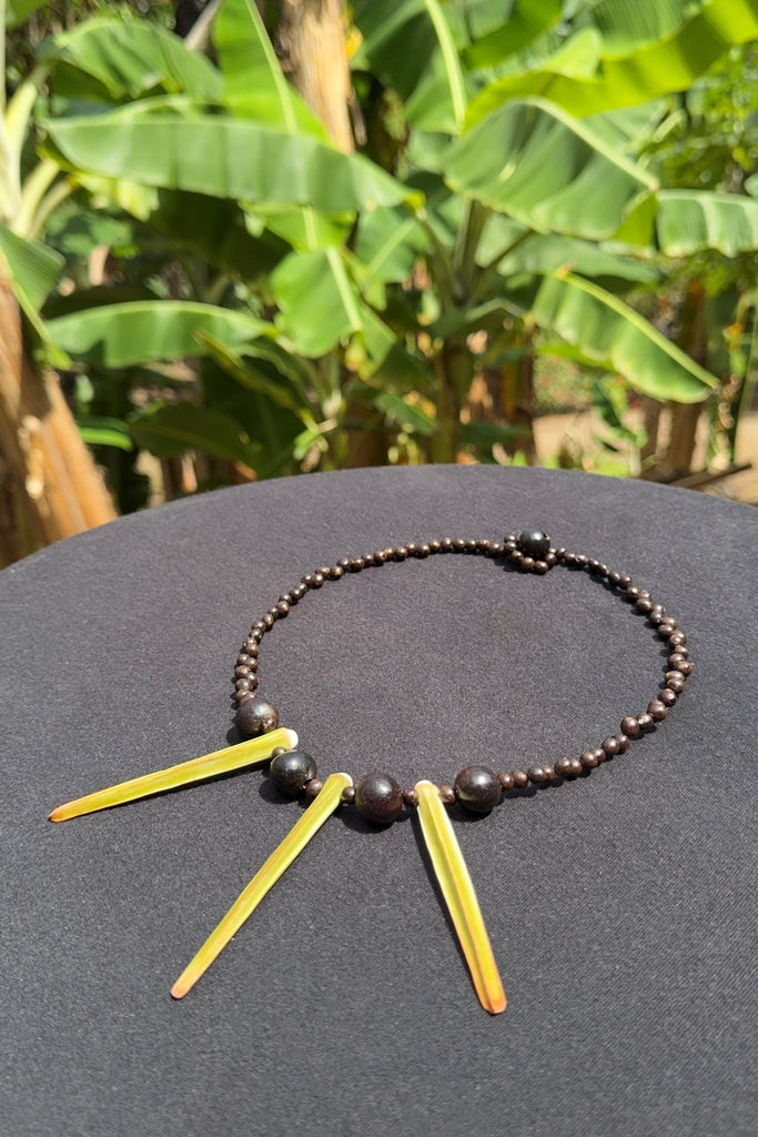 Sea urchin necklace made on Nuku Hiva Island, mixing natural sea urchin spines with local kana seeds. Raw, ocean-inspired, and straight from island life.